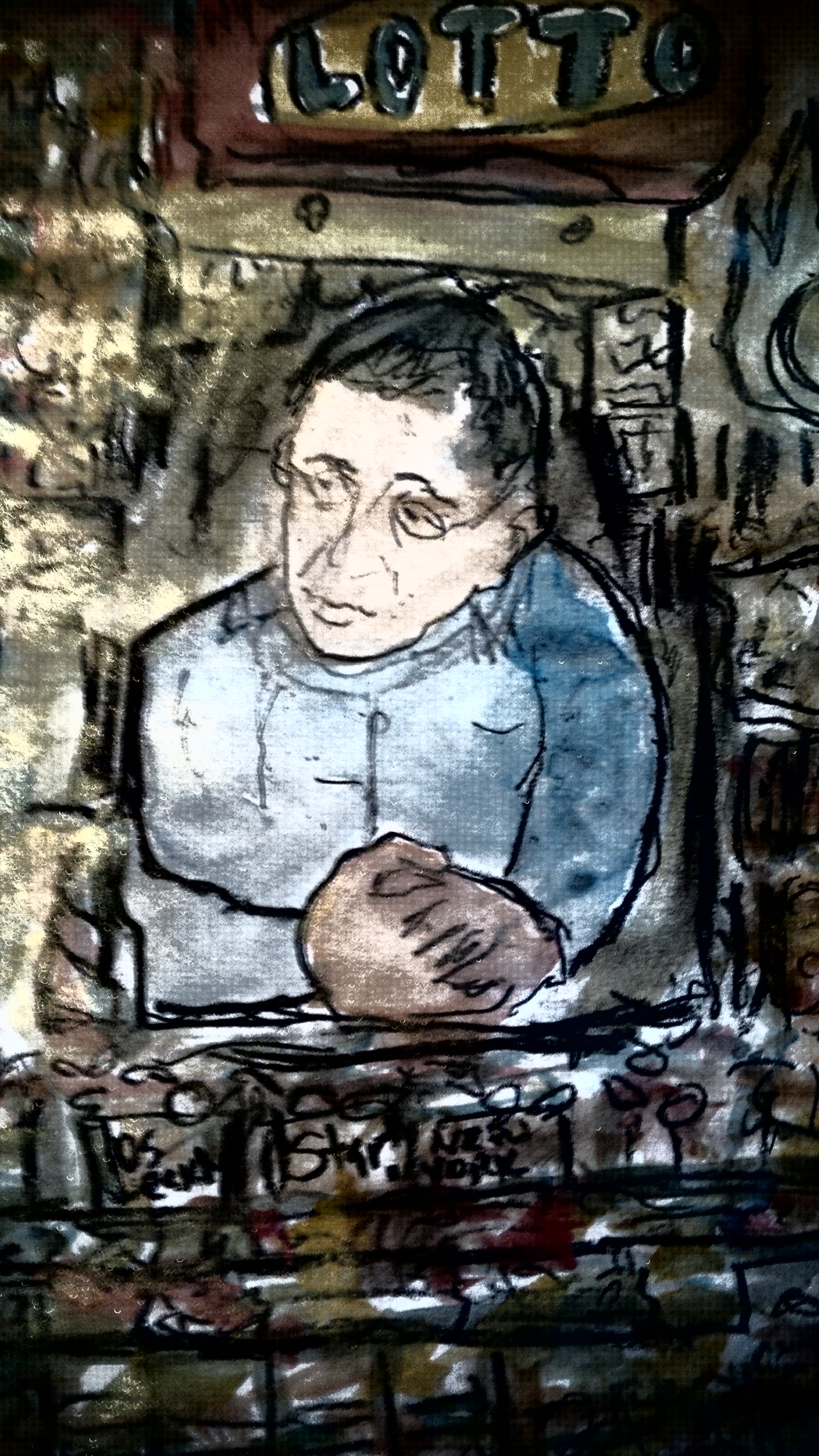 Chester at the diner Papaya Subway Kiosk Man Old friends .