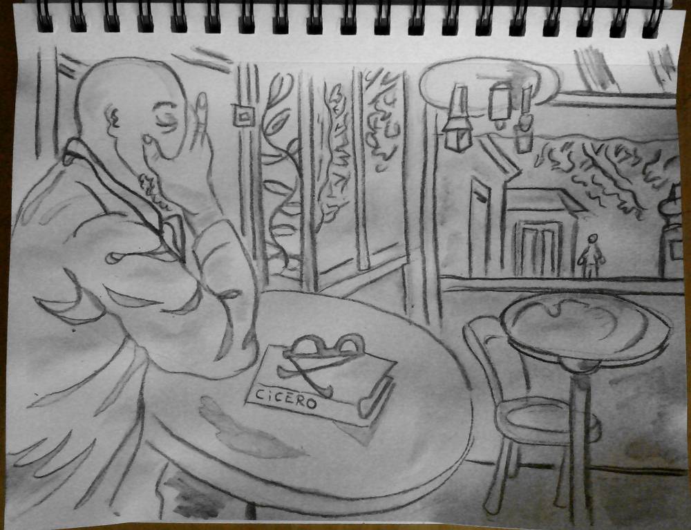 drawings no matter where I am using paper, pencil and a brush which i dip into